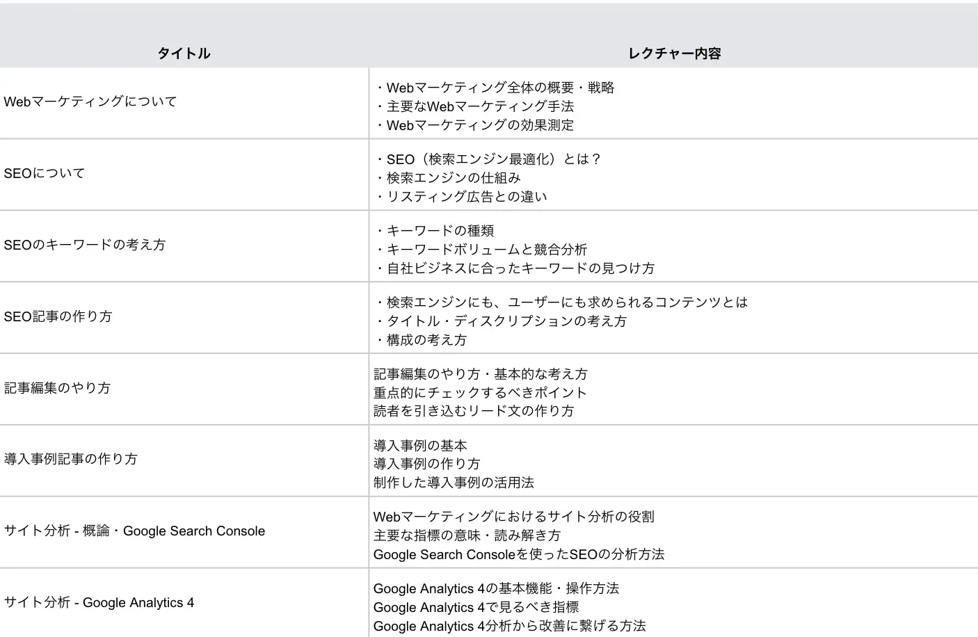 内製化を目指して、2024年12月から毎月SEOやアクセス解析に関するレクチャーを実施しています。